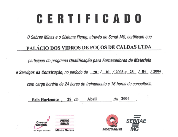 A Palácio dos Vidros é uma fornecedora qualificada pelo PBQP-H para fornecimento de materiais de construção.